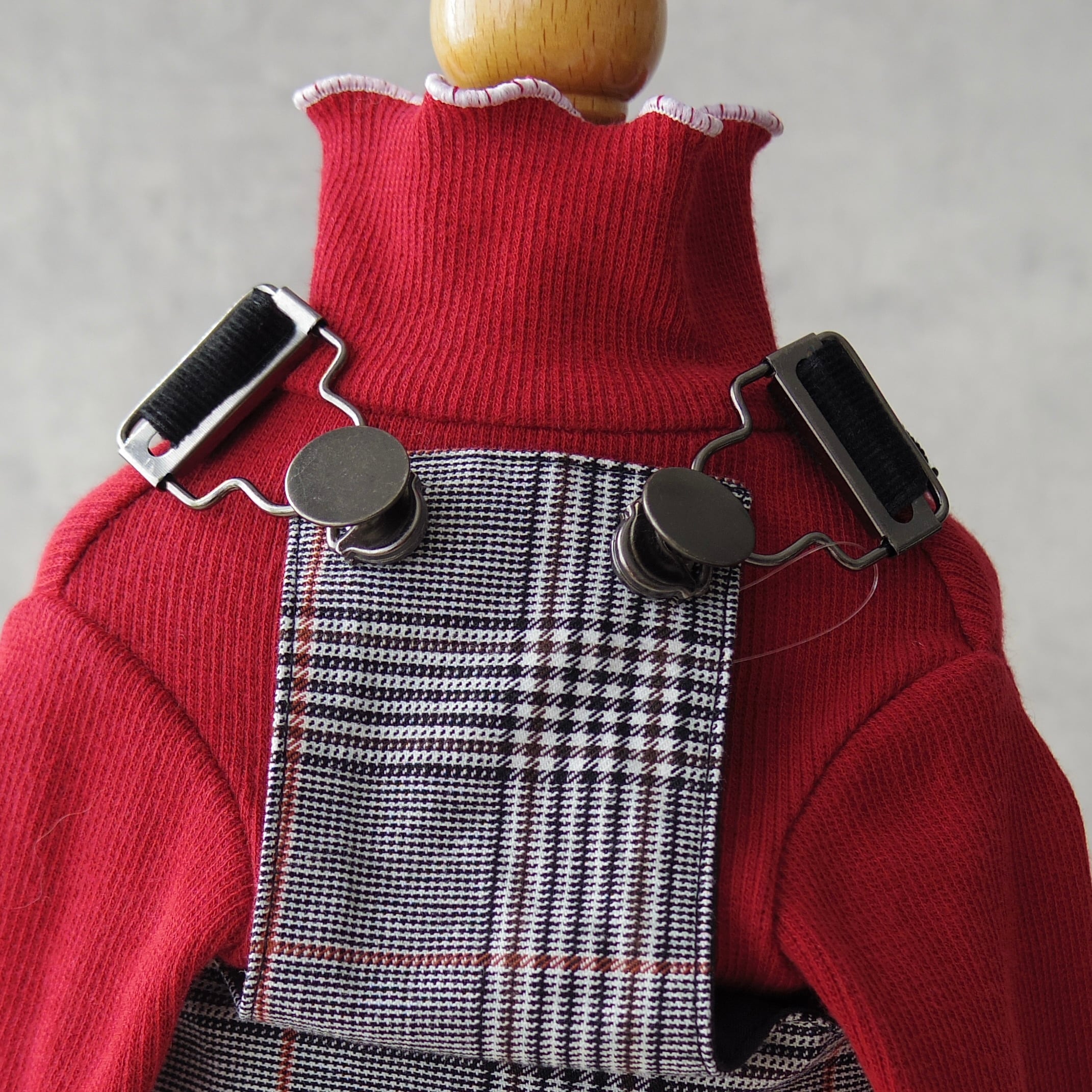 カジュアルになりがちなサロペットを上品に仕立てました。