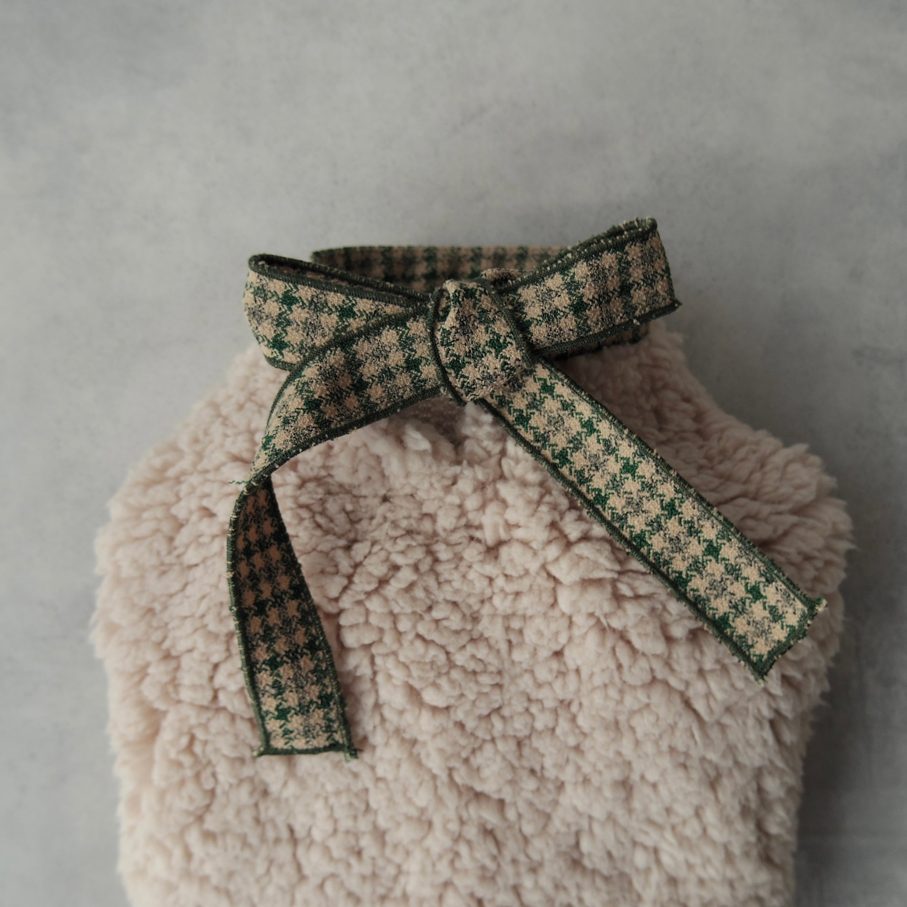 ボアのふわふわに、かっちりとしたチェック柄を合わせて上品な仕上がりに。