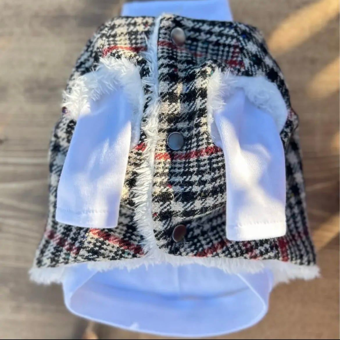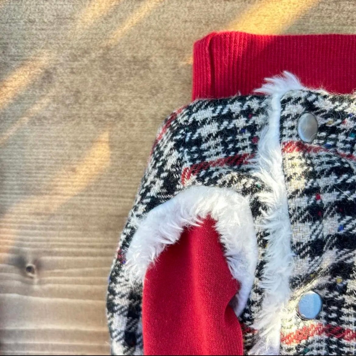 裏はふわふわのファーで柔らかいため、着心地も良い1枚です。