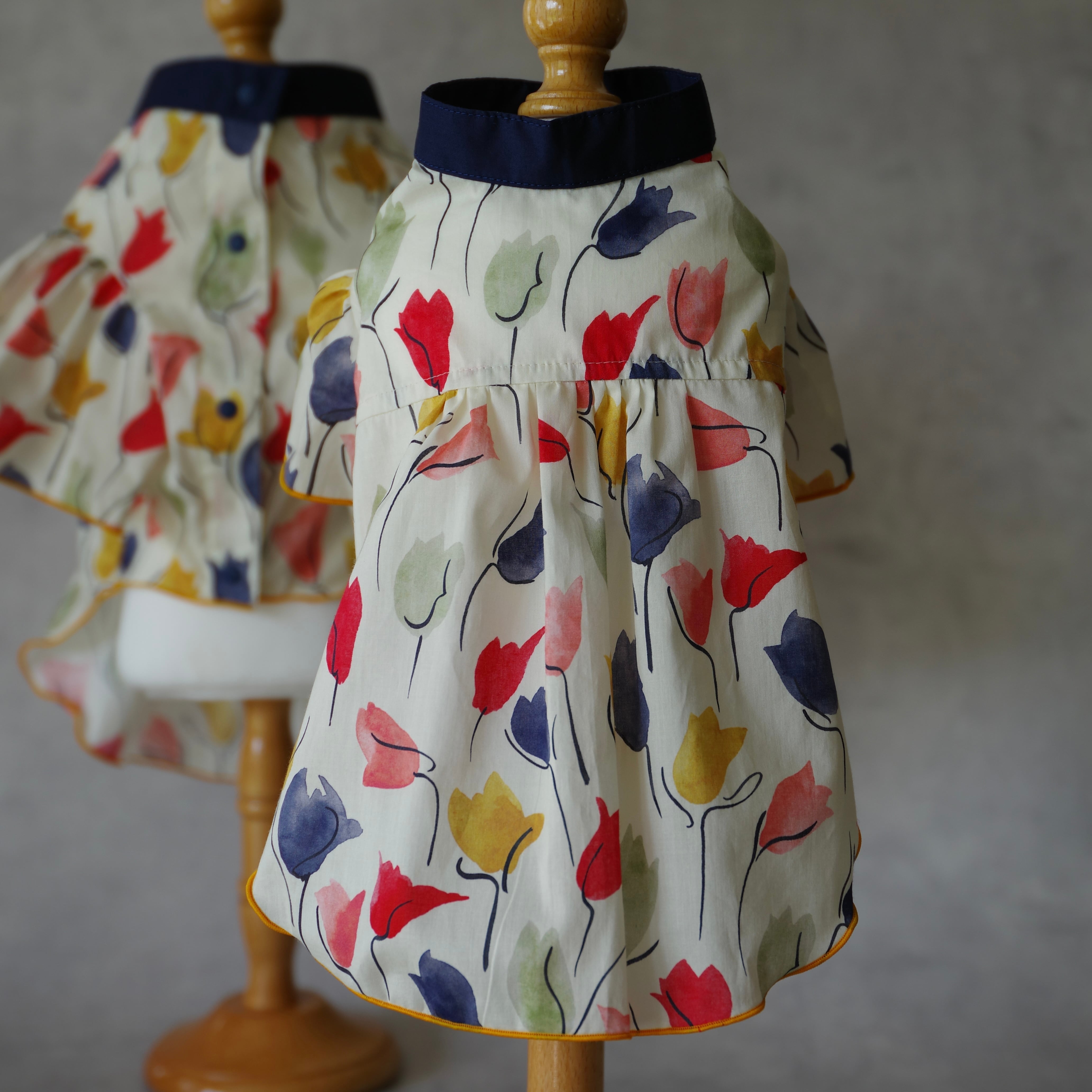 長年愛されているLIBERTYのチューリップ柄のワンピース。